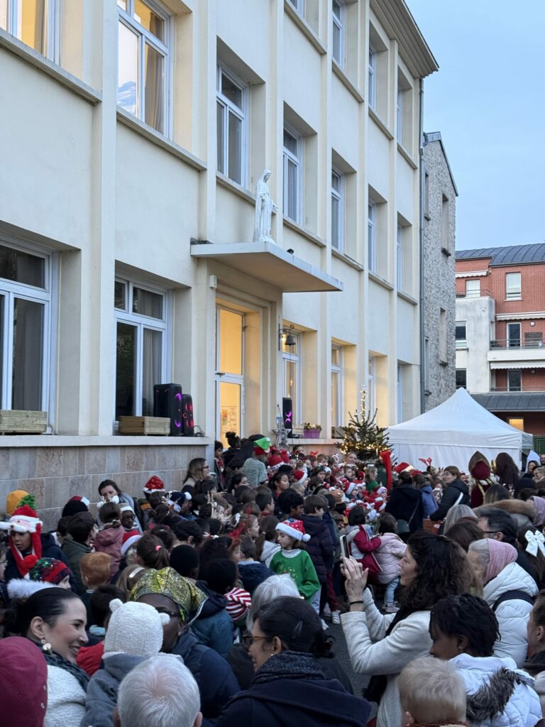 Au programme : des chants interprétés par les enfants, la visite de Saint-Nicolas et du Père Fouettard, sous le regard curieux et admiratif des parents, toujours présents pour partager ce moment. Les élèves ont ensuite pu découvrir le petit marché de Noël organisé par l’APEL. Celui-ci proposait des stands de créations faites main par les enfants, un stand de livres variés (ouvrages de Noël et autres genres), des goodies à l’effigie de Sainte-Marie, ainsi que les très attendus stands de crêpes et de pop-corn.
